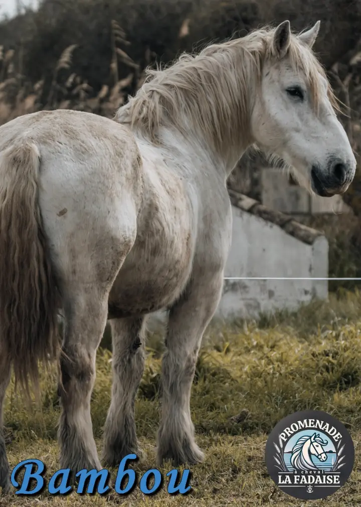 Ne vous fiez pas à ma carrure impressionnante, je suis aussi gentil que je suis costaud. Pour moi la vie c’est « doucement le matin, pas trop vite l’après-midi ». Je suis l’ami de ceux qui ont un peu peur et qui ne veulent pas faire d’excès de vitesse. Un doux géant pour vous faire découvrir la Camargue tranquillement. Dans le troupeau je m’entends bien avec tout le monde, je n’ai pas un ami en particulier, je trouve tout le monde sympa !