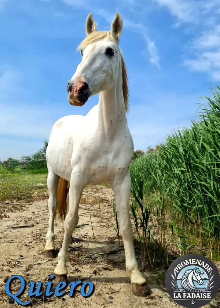 Je suis l'ami des jeunes cavaliers et ils me le rendent bien, ils m'adorent ! Je suis un cheval à deux facettes, je marche lentement mais dès qu'il s'agit de trotter ou de galoper je deviens une vraie fusée ! Dans le troupeau mon meilleur copain c'est Lakmé, mais je suis gentil avec tout le monde. Mon péché mignon ? Les petits bonbons qu'on me donne après la balade... 😊🍬