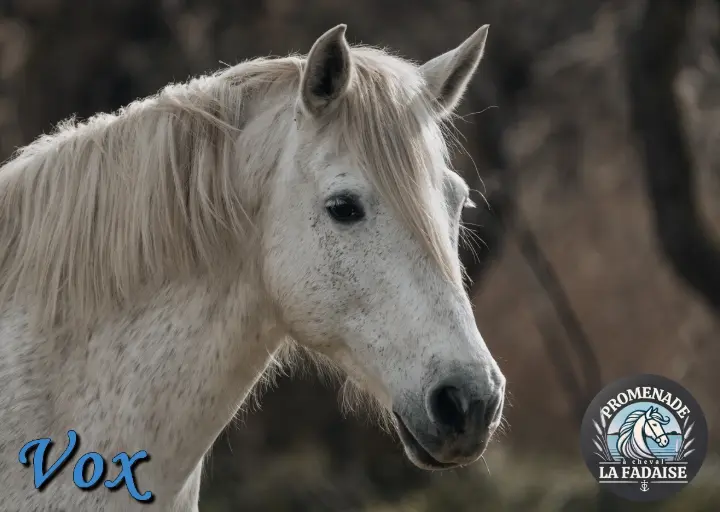Je suis l’assurance vie du troupeau, les jeunes enfants qui ont tout juste l’âge de faire les balades à cheval et les humains qui ont très peur c’est sur mon dos qu’ils montent ! Je suis douce, rassurante et pas très rapide, vous verrez avec moi les appréhensions disparaissent vite. Je suis plus occupée à grignoter les touffes d’herbe qu’à suivre le rythme. Dans le troupeau je m’entends bien avec les autres juments et avec Basile, mon chéri. J’ai un petit secret : J’adore l’eau ! Ne vous endormez pas sur mon dos quand je traverse un étang sinon on prendra un bain ensemble 😉